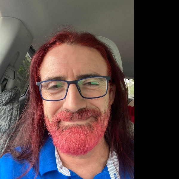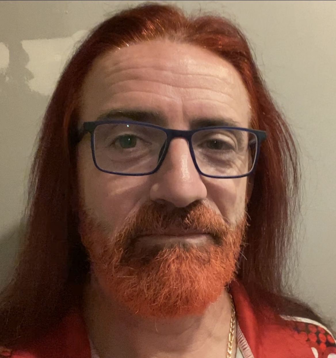 After a few days with red hair, I dyed my beard too. I tried for fire engine red but got more pink/orange.