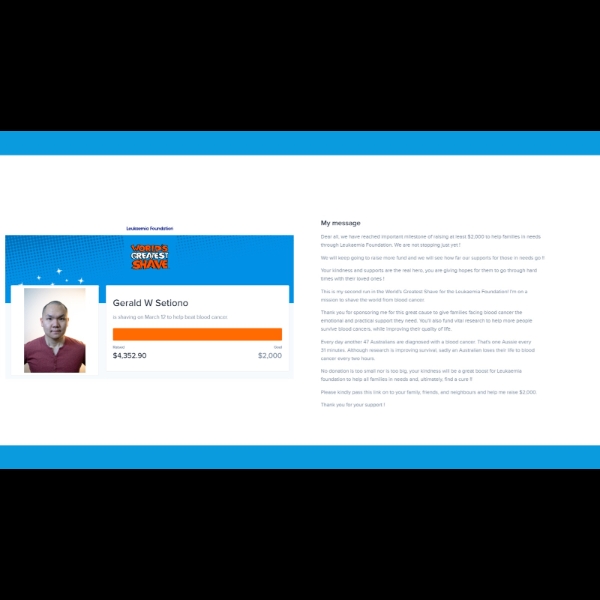 It will be a great boost for Leukaemia Foundation to help all families in needs and, ultimately, find a cure.