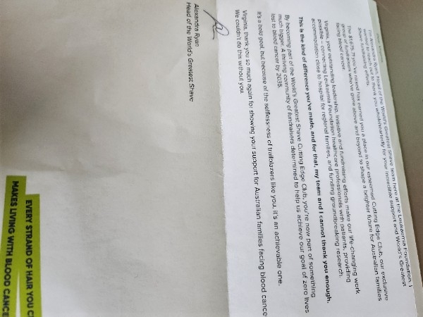 Congratulations on such an incredibly selfless act. Shaving your head and raising money for the Leukaemia Foundation takes real courage and compassion. You should be so proud of the difference you’re making 🤍